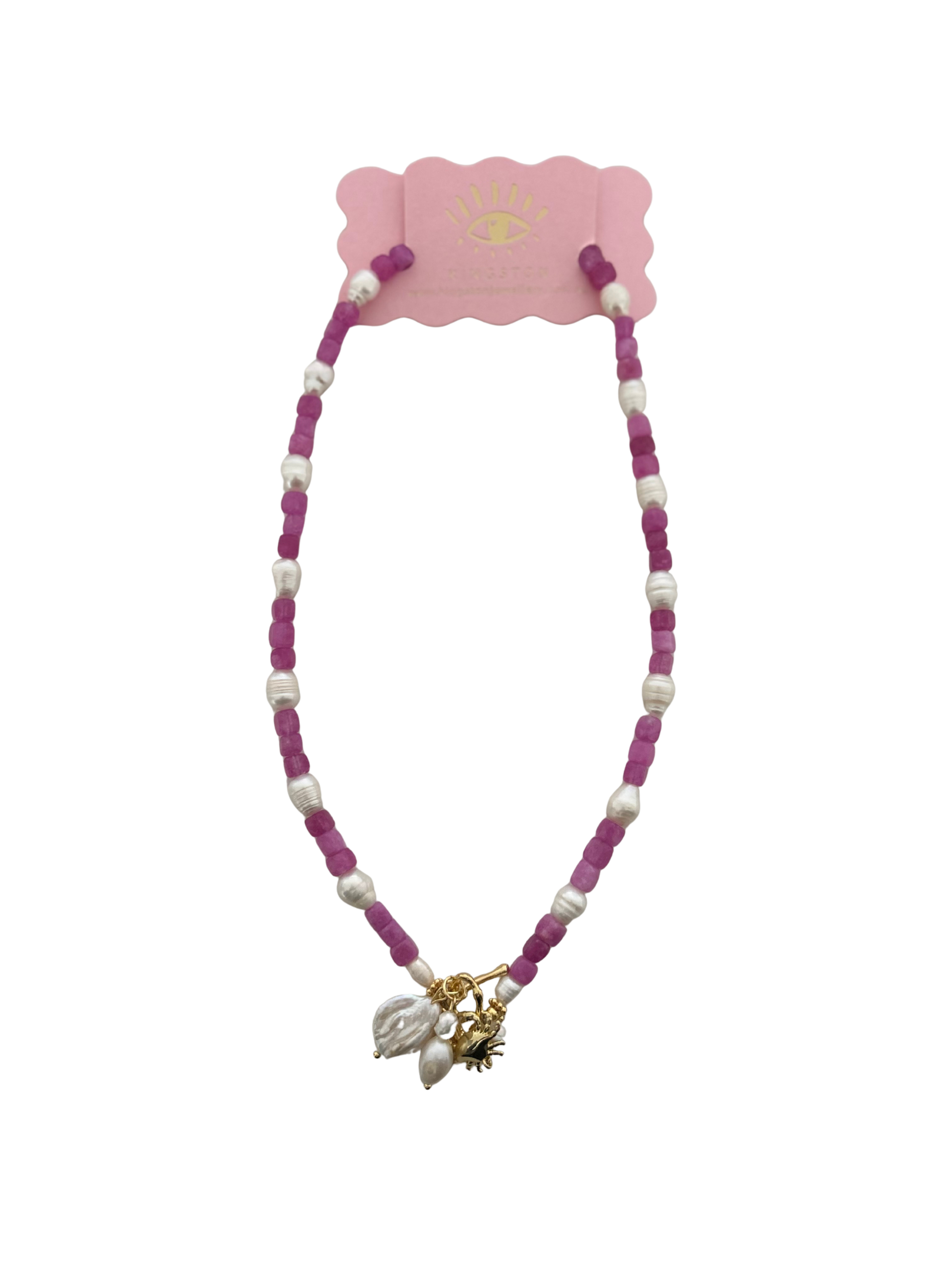Elevate your style with the Kingston Necklace, featuring a unique Keshi Pearl and stunning berry coloured beads. Each piece is handmade and truly one-of-a-kind, adding a touch of individuality to your look. With a 4cm extender included, you can easily adjust the length for the perfect fit.