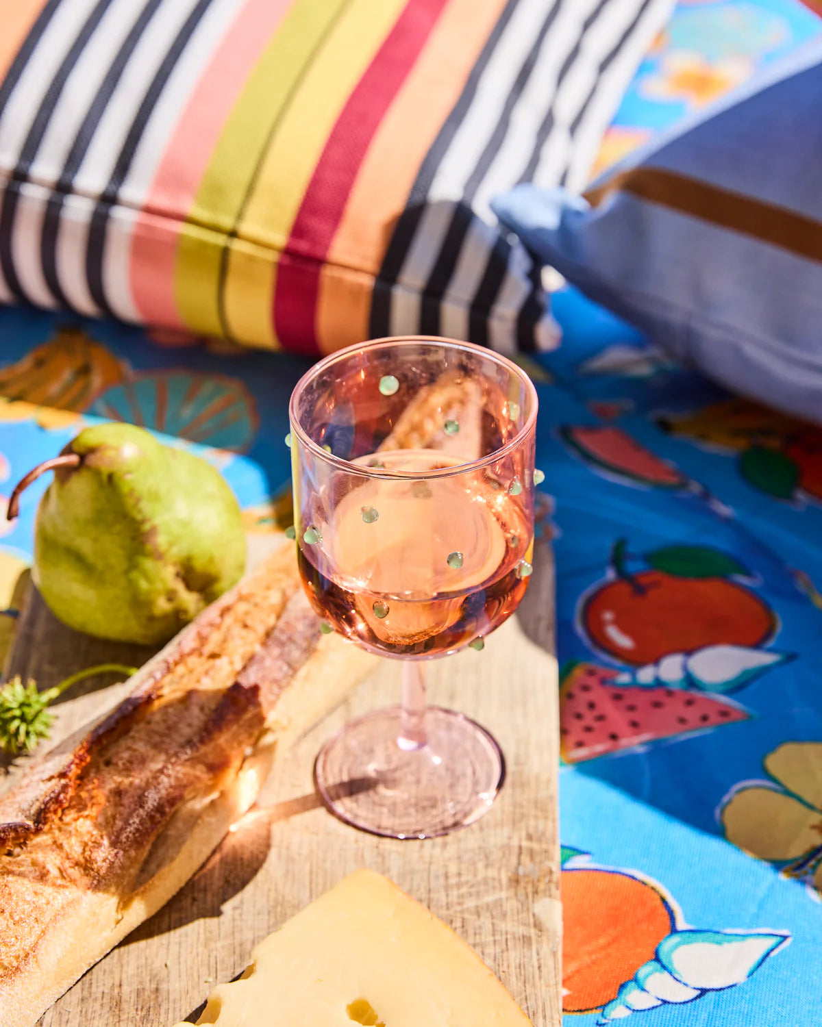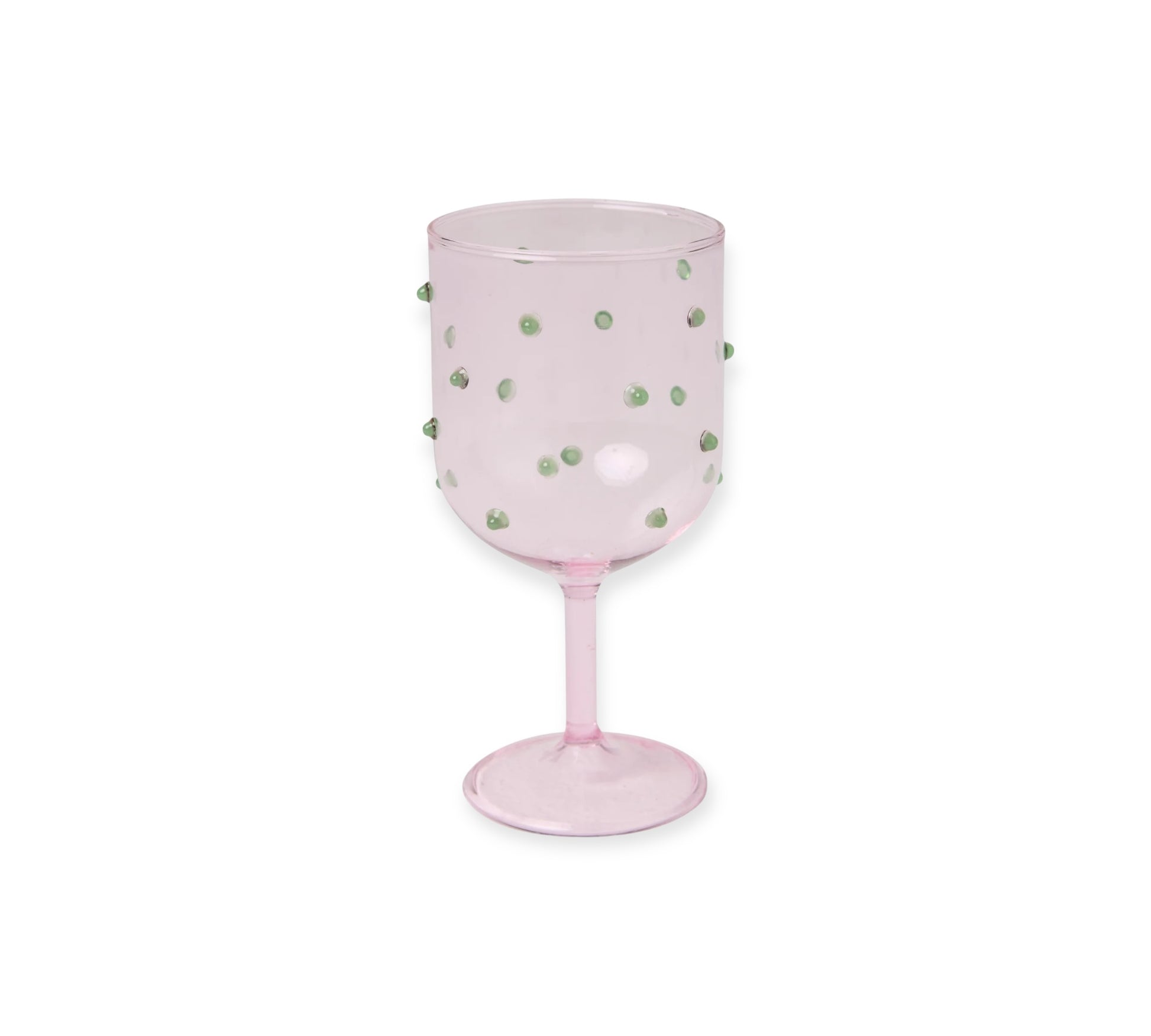 Introducing the Kip & Co Mint Chip Wine Glass, a pastel delight with raised mint-green spots on pale pink glass. Perfect for bubbles, wine, or a cheeky spritz, it adds style and a scoop of fun to any occasion. Cheers to colour and clinking glasses in sweet celebration all year round.