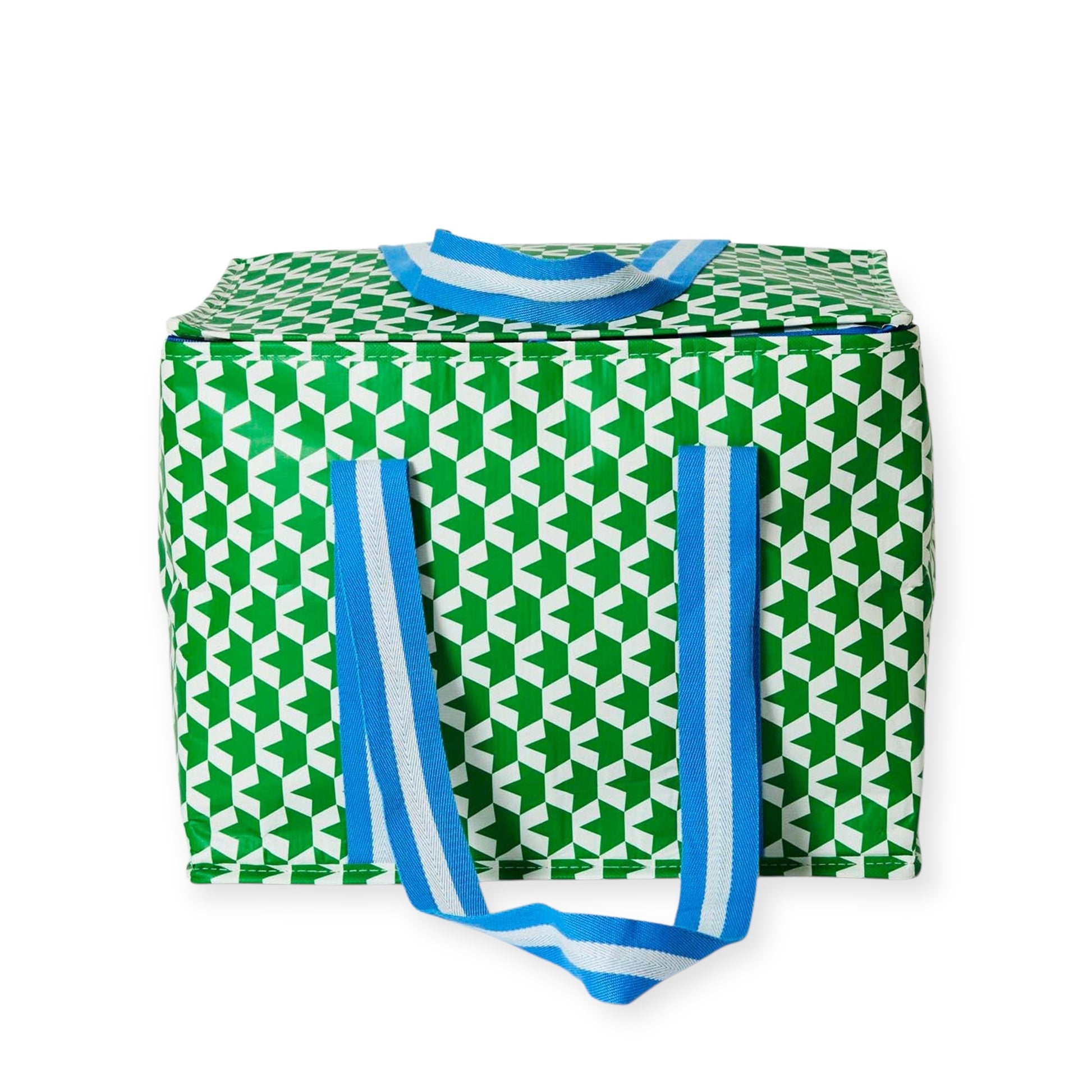 – Matte finish, sturdy woven RECYCLED plastic (RPET) with insulated lining.