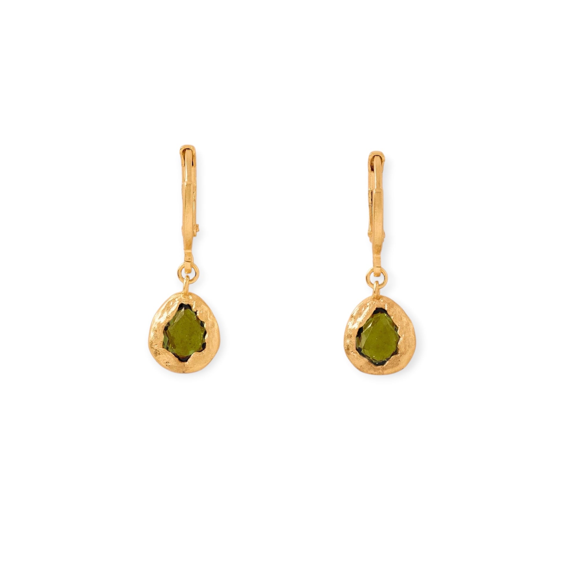 Indulge in the luxurious beauty of the Agapée Lysia Dark Green Earrings. The textured gold nest encases delicate peridot glass stones, evoking the glistening leaves of nature. Ethically made in France, our earrings are hypoallergenic and adorned with olive glass stones. A perfect gift for any occasion.